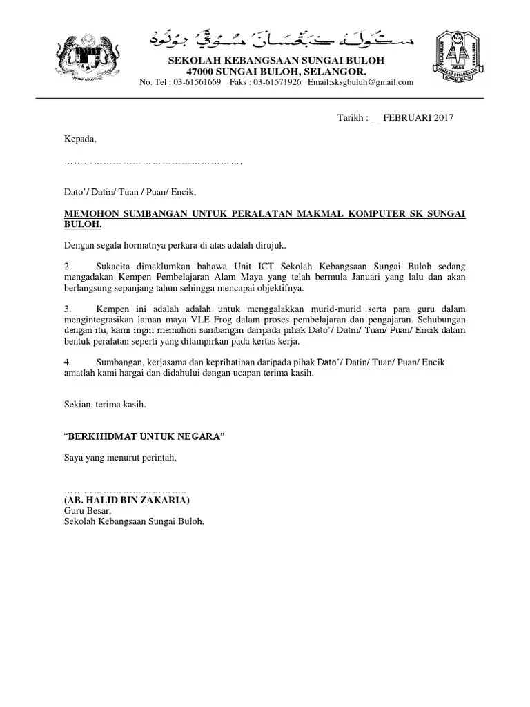 20 contoh surat mohon sumbangan penghawa dingin. Surat memohon kebenaran meminjam peralatan sekolah. Surat rasmi permohonan peralatan pejabat, contoh surat rasmi. 20 contoh surat mohon sumbangan komputer riba. Contoh surat permohonan peralatan sekolah. Sekolah kebangsaan kemendor, felda tun ghaffar kemendore, 77000 jasin,